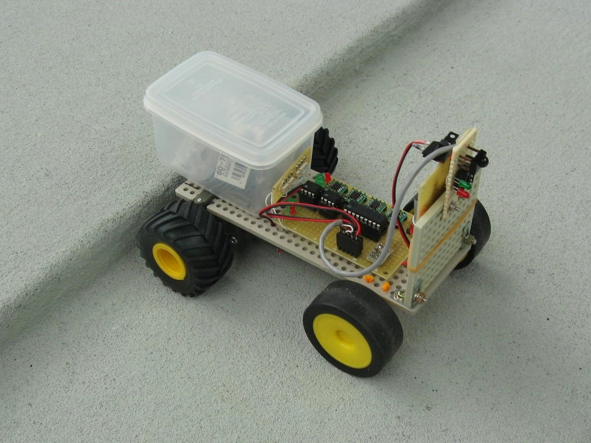 1号機は自走式です。大会規定では無線部門または有線部門となっているので、自走式は参加資格がありません。でも、自走式は面白いと思うのでつくってみました。