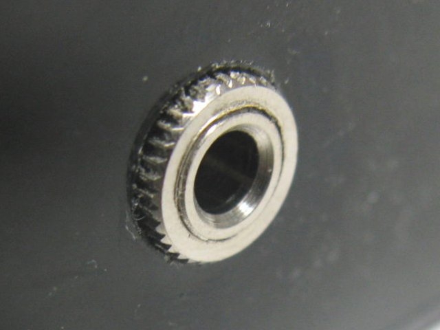 ケースの厚さが厚くて、ナットを充分締められずイヤホン端子よりもナットが前にいたため、プラグが充分刺さらなかったのが原因でした。下穴をナットの大きさにして、ナットを埋め込んだようにしました。
