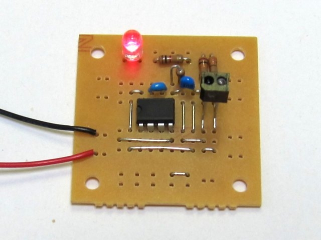 赤外のフォトインタラプターに指先を当てると、脈拍にしたがってLEDが点滅するというものです。