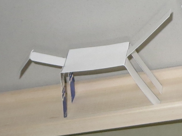 工作ははさみで切って折り曲げるだけですから、比較的簡単ですが、トコトコと上手く歩かせるのはなかなか大変です。