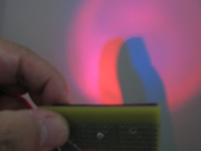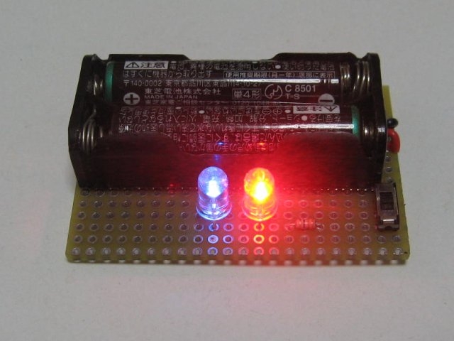 赤と青のLEDが手持ちにあったので、作ってみました。
