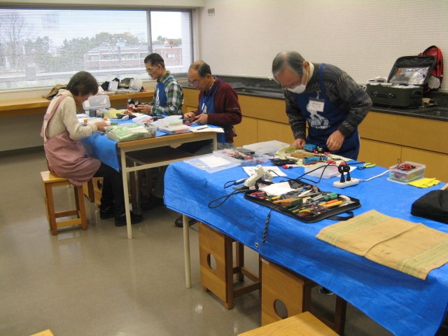 センター内の別室では「おもちゃ病院」が開院されていました。ボランティア仲間の方がお医者さんをしています。患者さんはたくさんいるようでした。