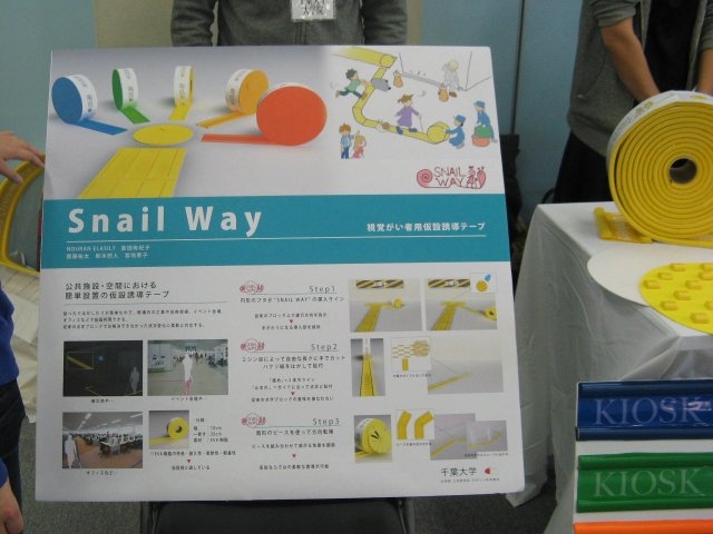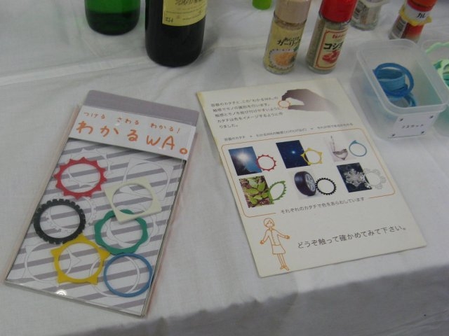 千葉大の組み合わせると音で聞かせる点字の練習機。メーカーの方も熱心に質問をされていました。