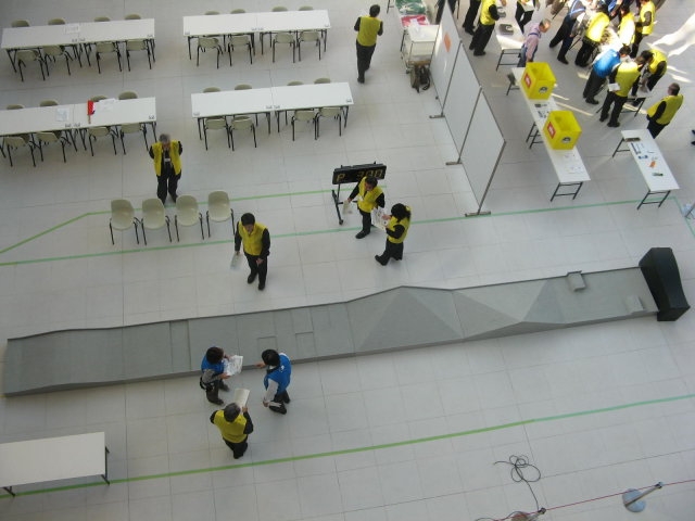 ここが2階の入り口です。うっかりするとどこが入口か判りません。入ってすぐに今日の予定表がありました。工作が3回、サイエンスショーが4回行われています。