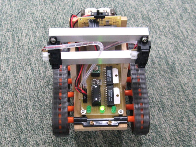モータ駆動用のICの東芝のTA7291Pはコントロール系は4.5Vが必要なので、その部分とPICの電源はステップアップDCDCコンバータをつかっています。