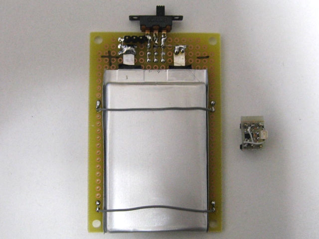 リチウムイオン電池の充電用のIC(リニアテクノロジーのLTC4054-4.2)と同一のユニバーサル基板への変換基板をつかいました。