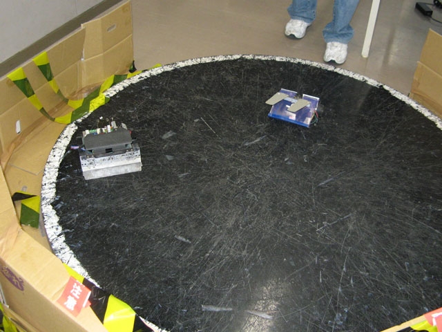 なかなかスピードのあるライントレースの車です。途中に走行経路を変えることが必要なコースですが、きれいにクリアして走行していました。1月に全国大会があるのだそうです。