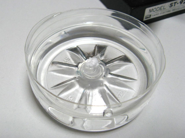 確認のため、発泡スチロールの小片を浮かべて、ネオジム磁石を近づけます。