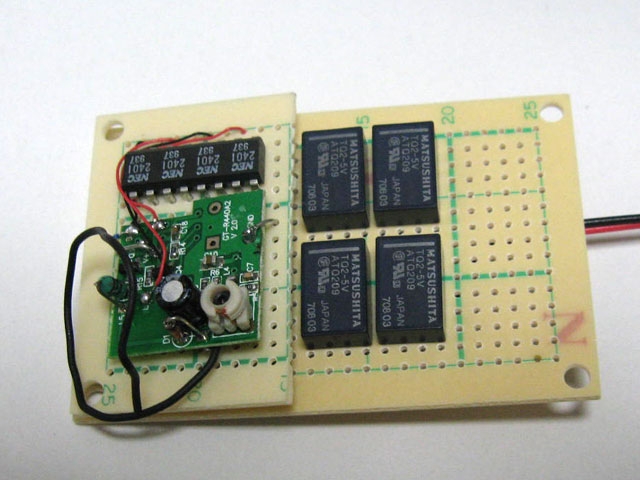 これをラジコンのリモコンスイッチとして使おうというのが今回の目的です。ラジコンのリモコンは4チャンネルあるので、スイッチも4つ動作させることができます。